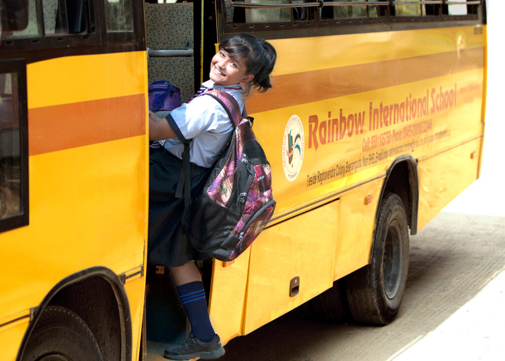 At Rainbow International School of Education, we understand the importance of providing safe and reliable transportation for our students. To address the challenges associated with public transport, we have a modern fleet of private buses equipped with an advanced tracking system. This system allows us to monitor the location of each bus in real-time, ensuring that students are picked up and dropped off on time, every day. The tracking system provides added security, allowing parents to receive updates and track their child’s journey.